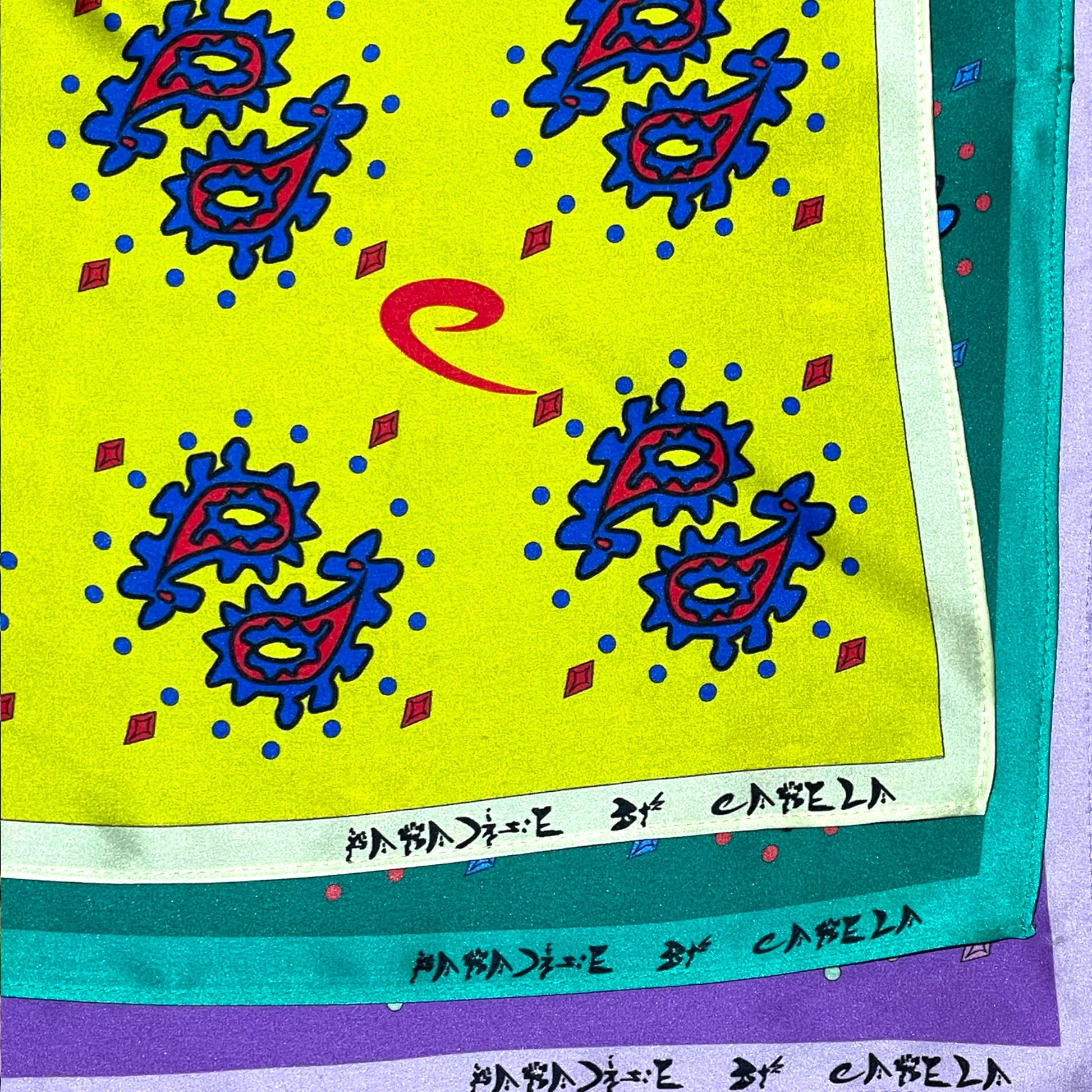 Introducing Paradise Silk Bandanas. Made from 100% silk, these bandanas feature a unique Carela pattern inspired by the vibrant colors of Caribbean culture. Enjoy the luxurious feel of silk and add a touch of paradise to any outfit.